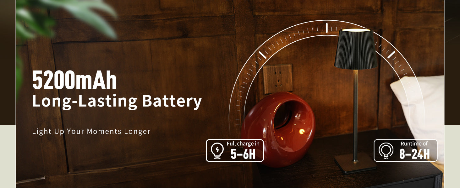 - Sustainable and Powerful Battery Lamp – Our eco-friendly LED table lamp features a powerful 5200mAh battery that charges in just 5-6 hours via the modern USB-C port. Experience up to 40 hours of light, allowing you to enjoy your time uninterrupted without constantly searching for an outlet